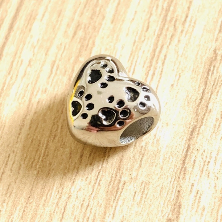 Berloque de coração com patinhas de cachorro em Aço inox.