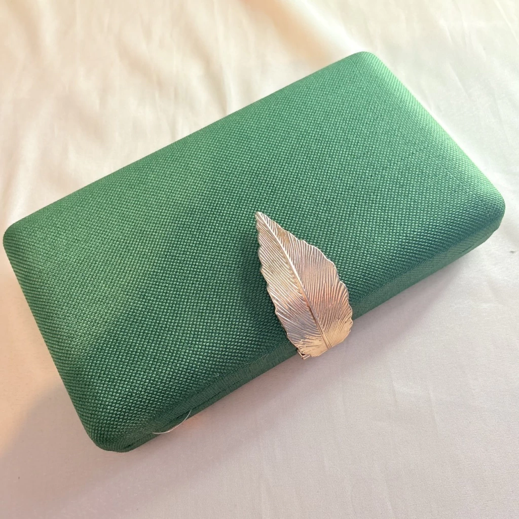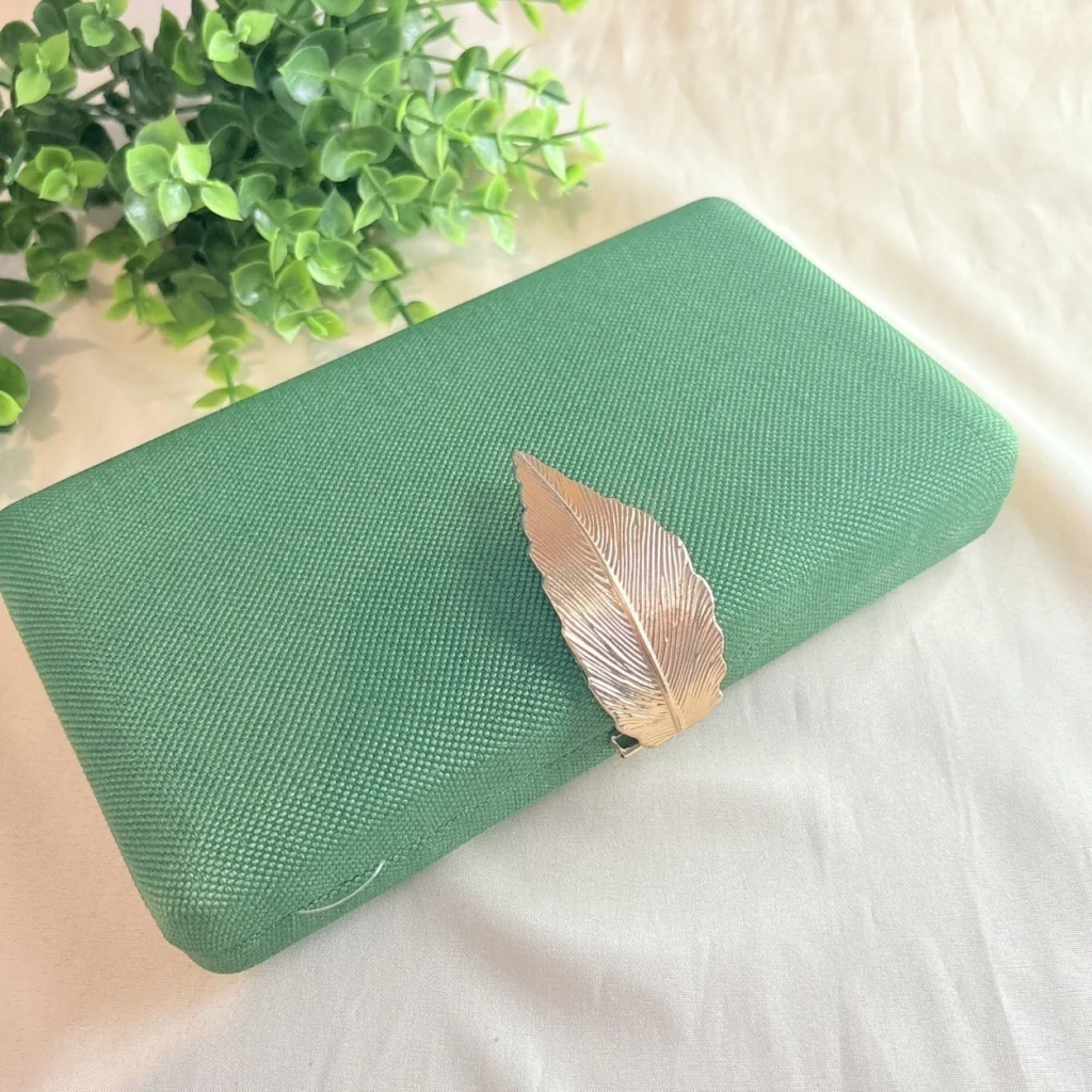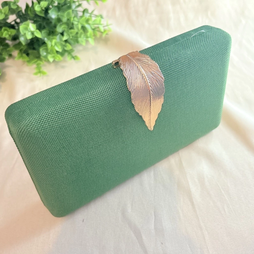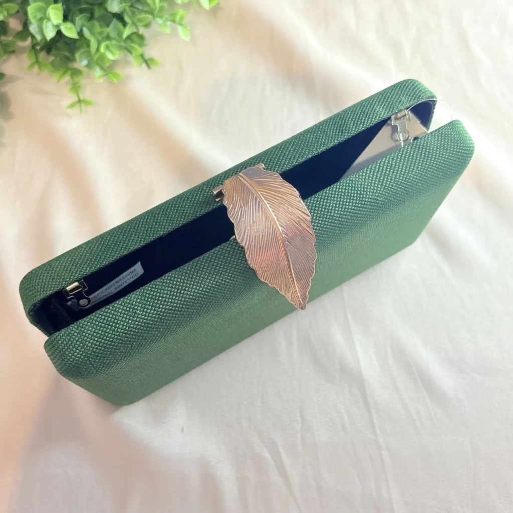 Delicadeza, bolsa moderna e cheia de personalidade, a bolsa clutch verde de festa se destaca pelo seu tecido texturizado e o fecho em formato de folha dourada, que traz um toque de charme natural ao visual. É a peça perfeita para complementar produções elegantes em eventos sociais, casamentos, formaturas ou jantares especiais.