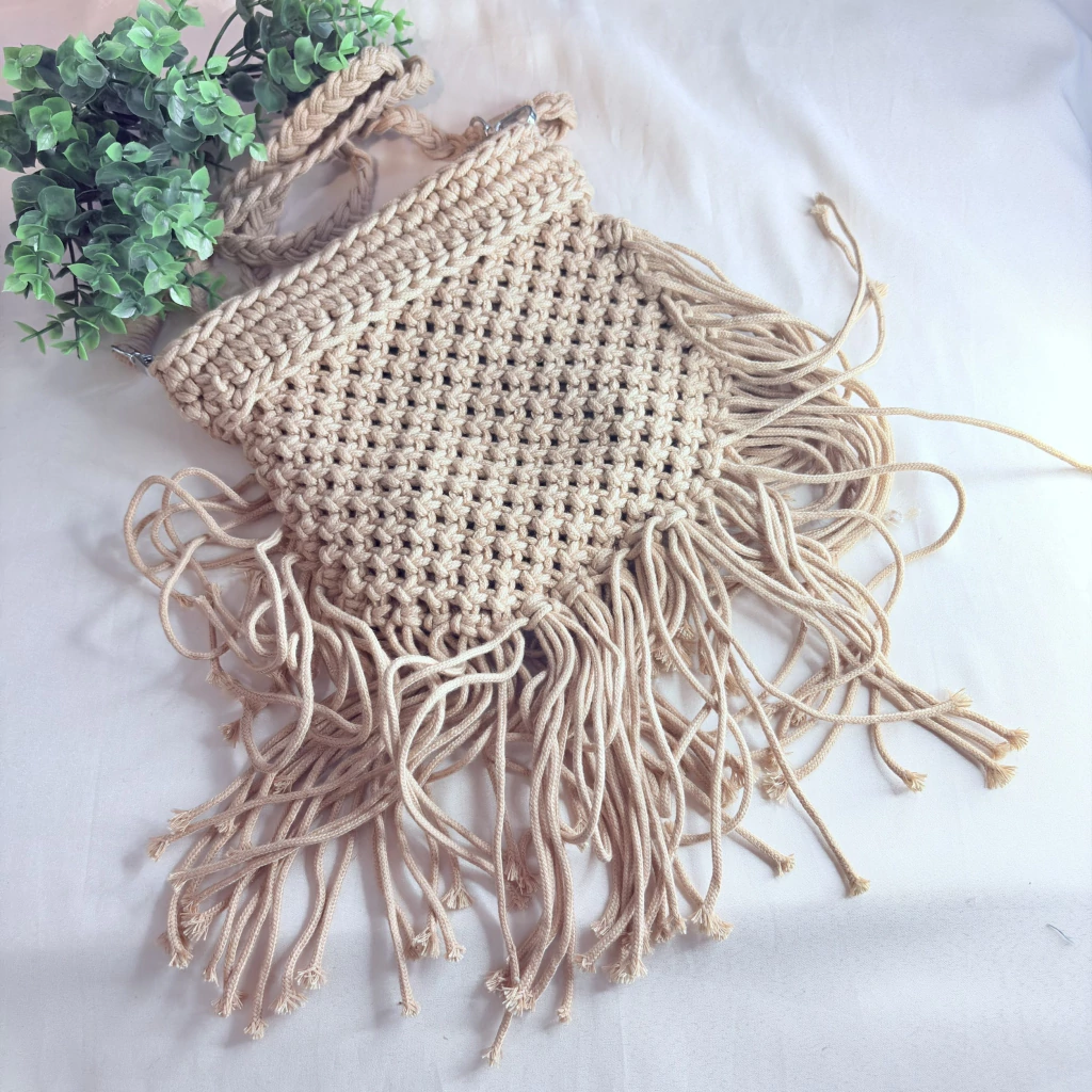 Com seu visual boho e tom neutro, essa bolsa combina com jeans, vestidos fluidos, peças em linho e até looks mais urbanos.