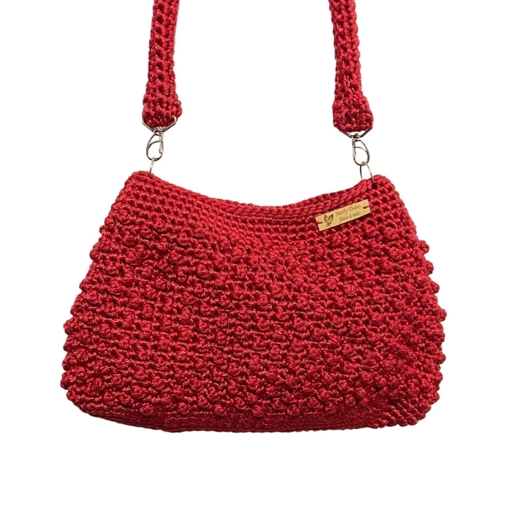 Adicione um toque vibrante e sofisticado ao seu look com a Bolsa Lateral Vermelha Artesanal em Crochê. Com um design exclusivo, esta bolsa é feita à mão, utilizando a técnica de ponto pipoca em crochê, que proporciona um efeito visual encantador e texturizado.