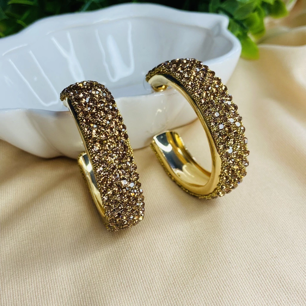 Não deixe passar a oportunidade de brilhar! Adicione o Brinco Argola Brilhante com Pedras à sua coleção e transforme seu visual com um toque de sofisticação!
