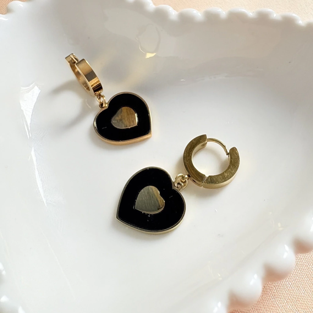 Seu formato de argola com pingente de coração dourado, garantem uma joia versatil e moderna.