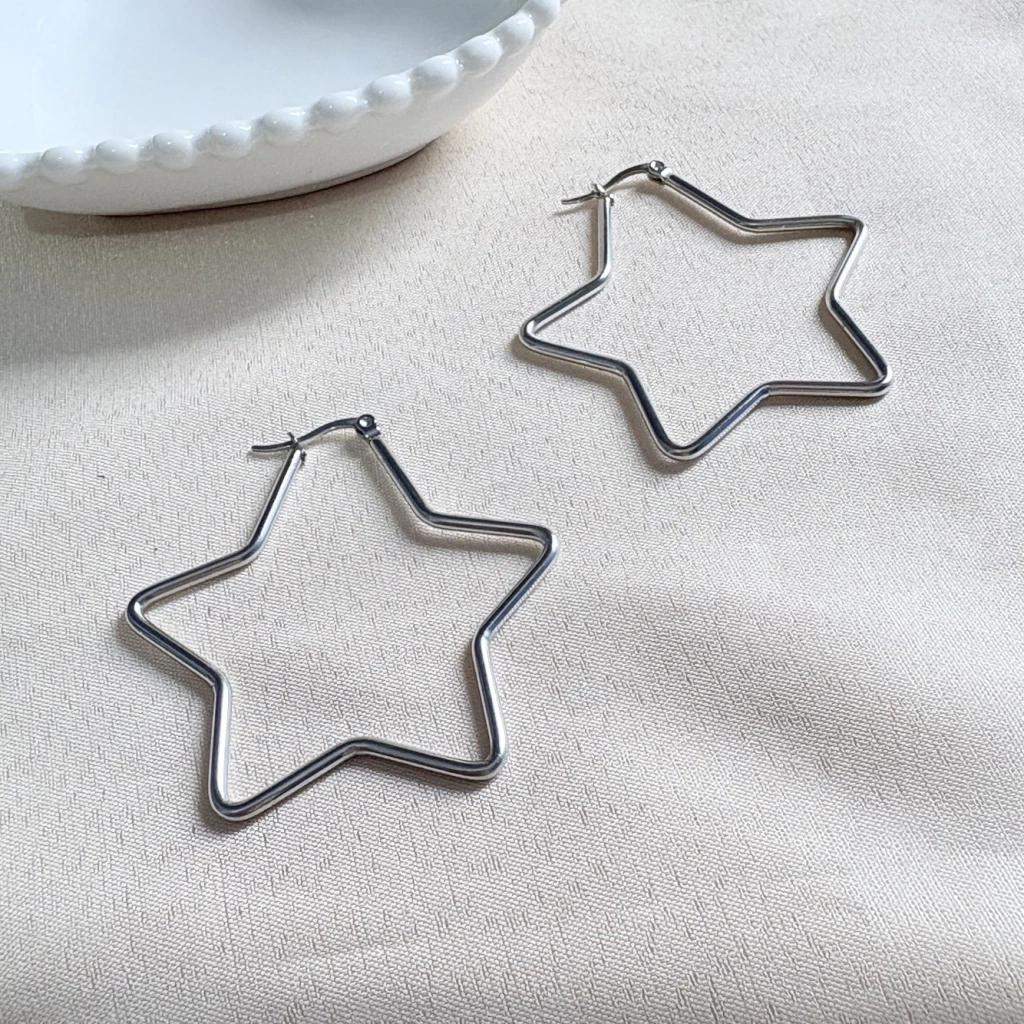 Não perca a oportunidade de adicionar um toque de brilho ao seu estilo! Compre agora o seu Brinco Argola de Estrela Vazada em Aço Inox e realce sua beleza com sofisticação!