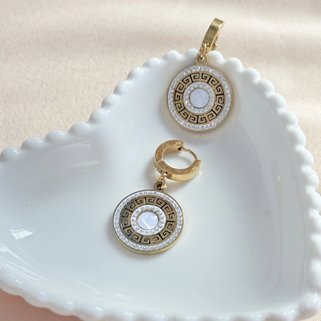 Adicione um toque de elegância e sofisticação ao seu estilo com o Brinco Argola Dourada com Esfera Madrepérola em Aço Inox. Este acessório impressionante possui uma aplicação de madrepérola no centro, adornada com desenhos arabescos encantadores e delicadas pedrinhas de strass que refletem a luz de maneira deslumbrante.
