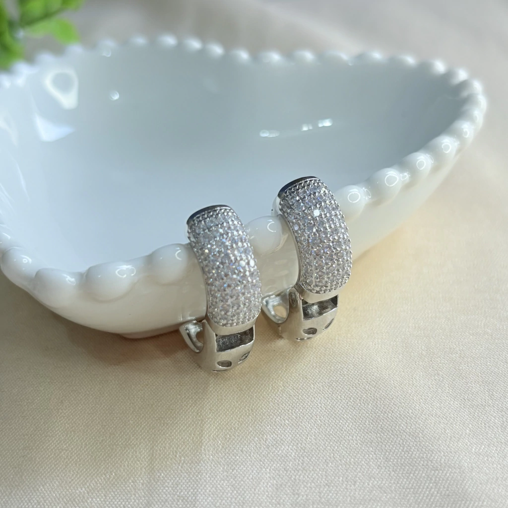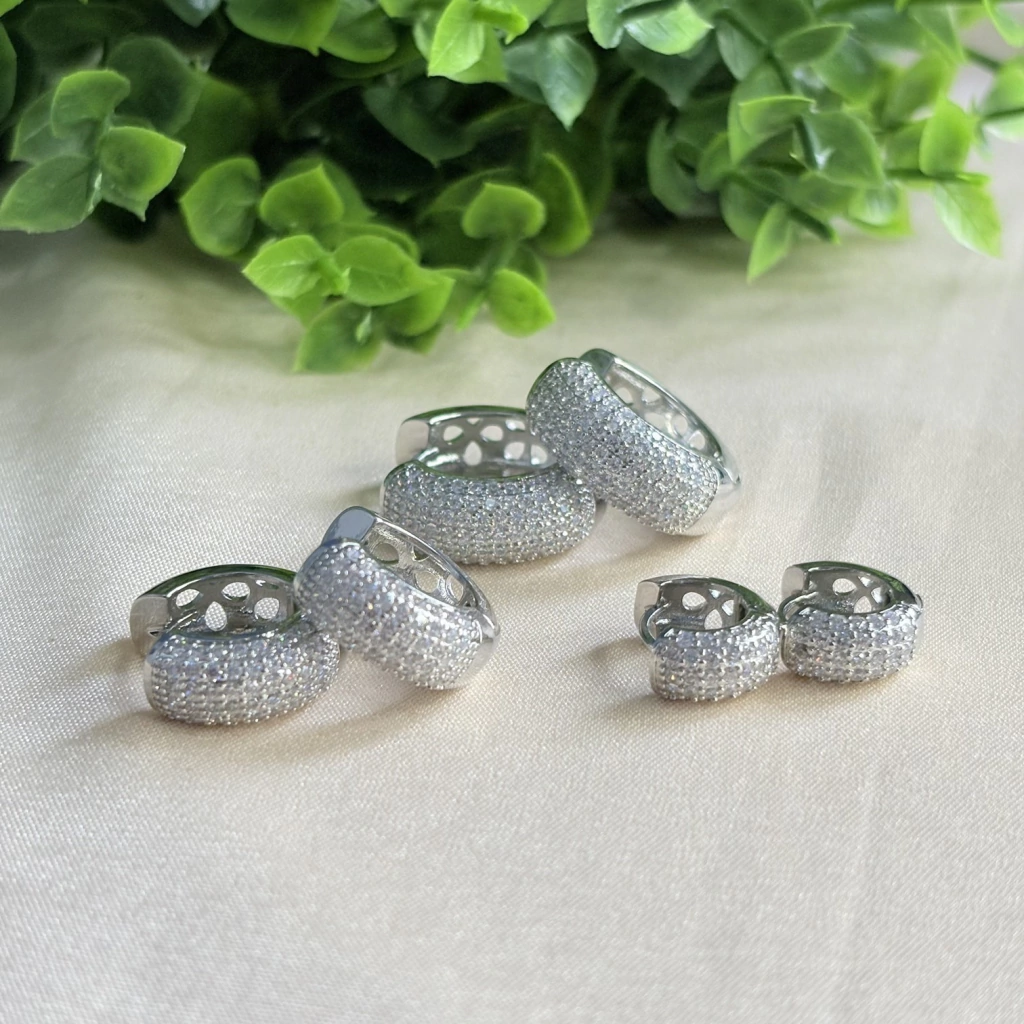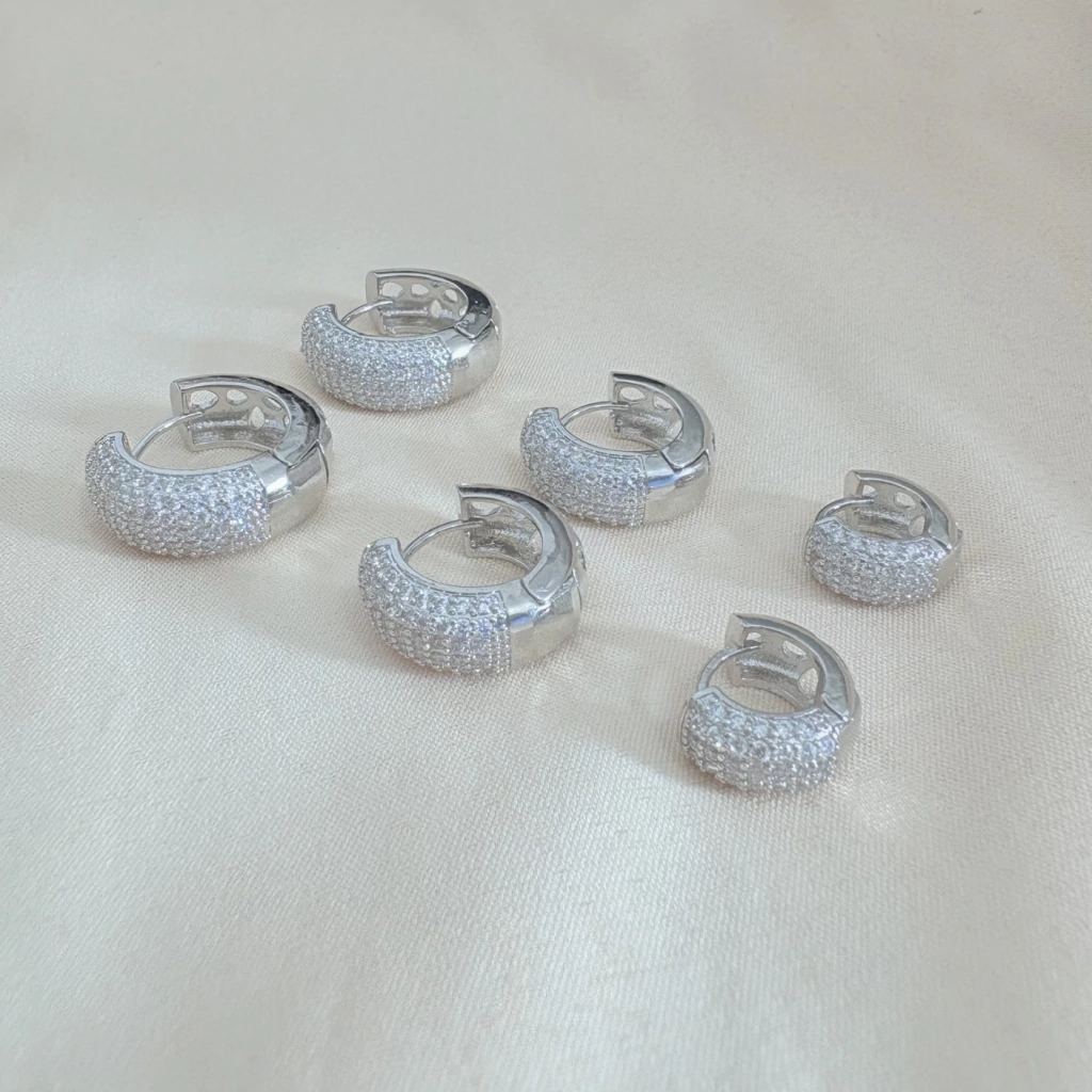 Disponível em três tamanhos, cada brinco é cuidadosamente projetado com pedras de zircônia na parte frontal, proporcionando um brilho radiante que certamente chamará a atenção. A parte de trás apresenta uma base desenhada, garantindo conforto e estilo.