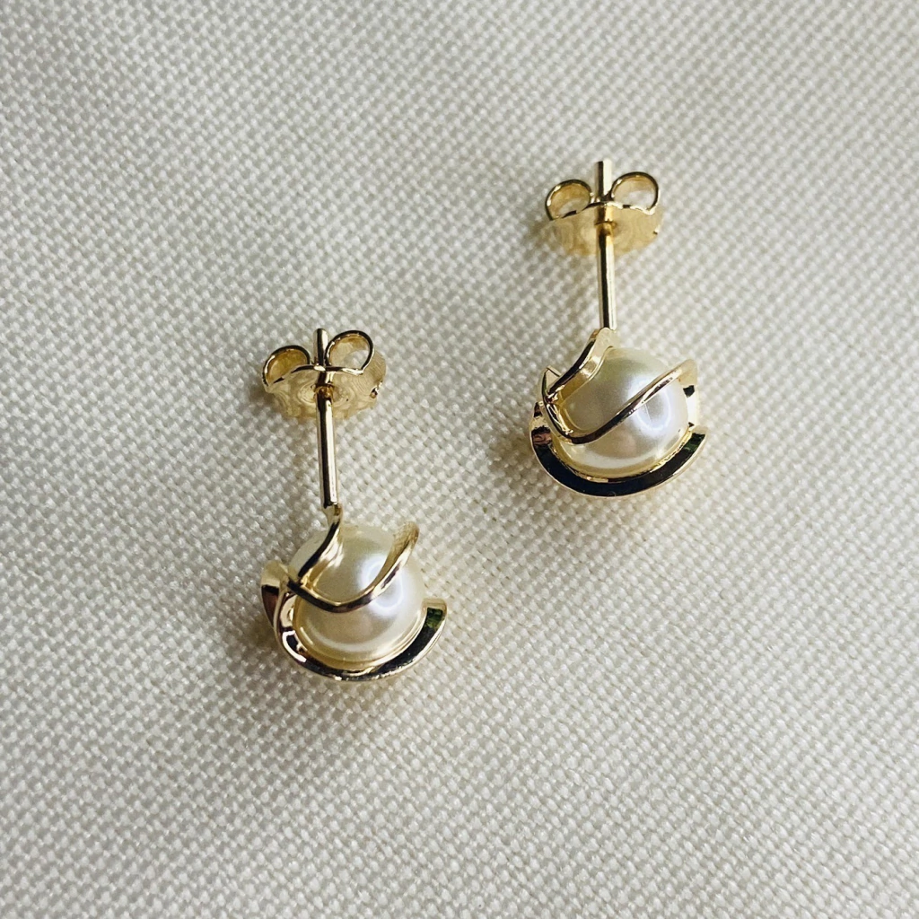 Brinco de Pérola com Enfeite Dourado Folheado 18K