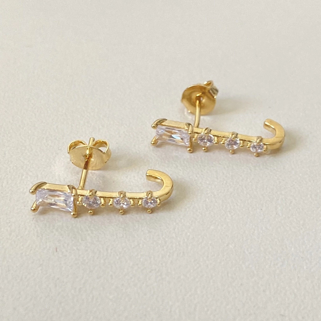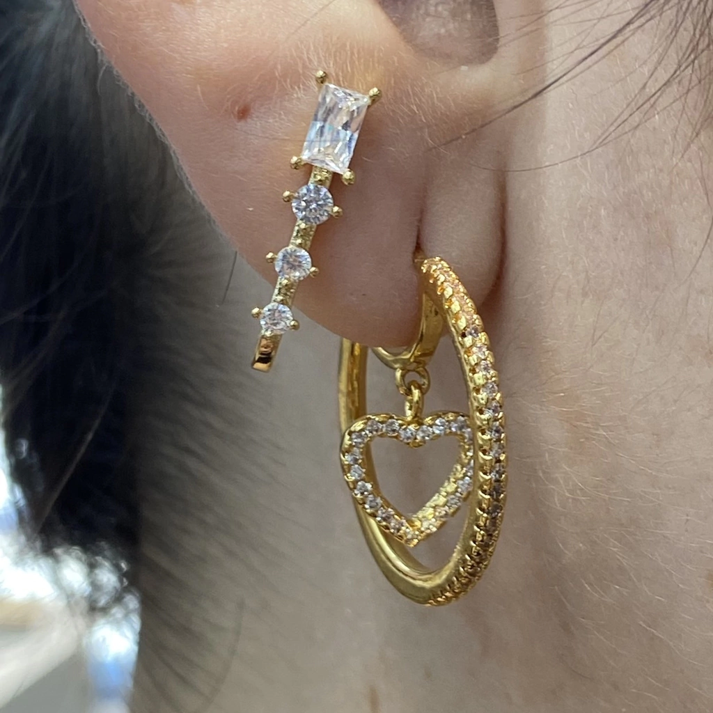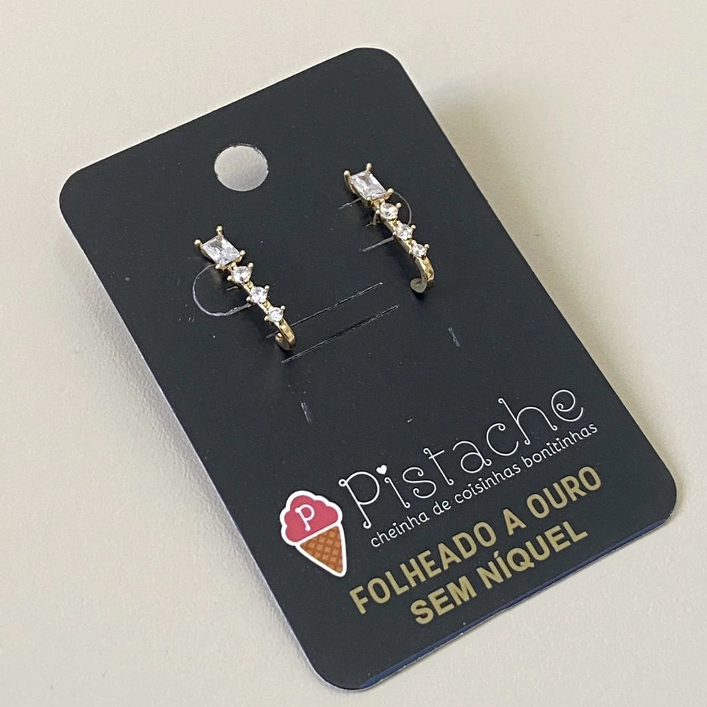 Possui pedras de zirconia cravejadas em todo o brinco, garantindo brilho e sofisticação na peça.