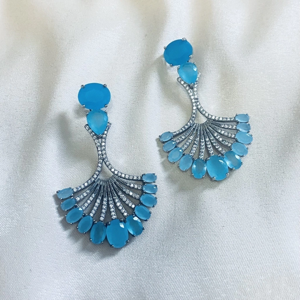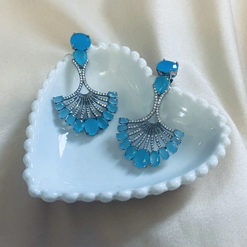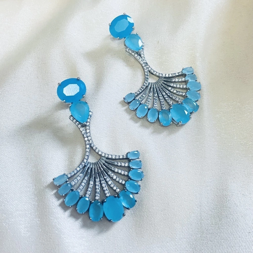 Brinco Festa com Pedras Azul e Branco em Prata 925