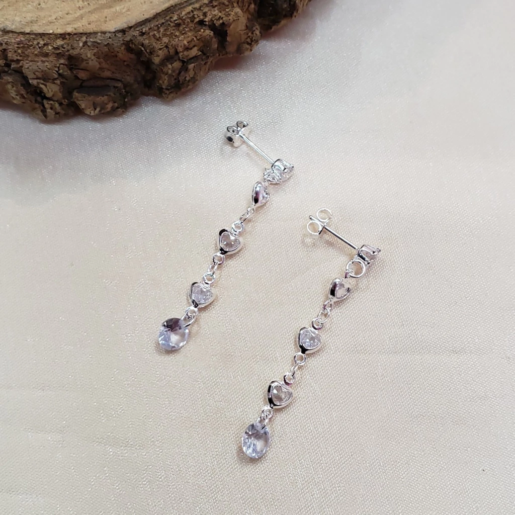 Um acessório encantador que une romantismo e sofisticação. O brinco pendurado com corações brilhantes possui base folheada a prata e é decorado com pequenos pingentes em formato de coração com pedrinhas cintilantes, que garantem um visual leve, delicado e cheio de charme. Ideal para compor looks especiais ou dar um toque feminino ao dia a dia.