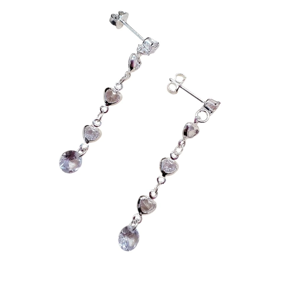 Confira aqui Brinco pendurado folheado a prata com corações brilhantes. Leve, delicado e ideal para looks românticos.