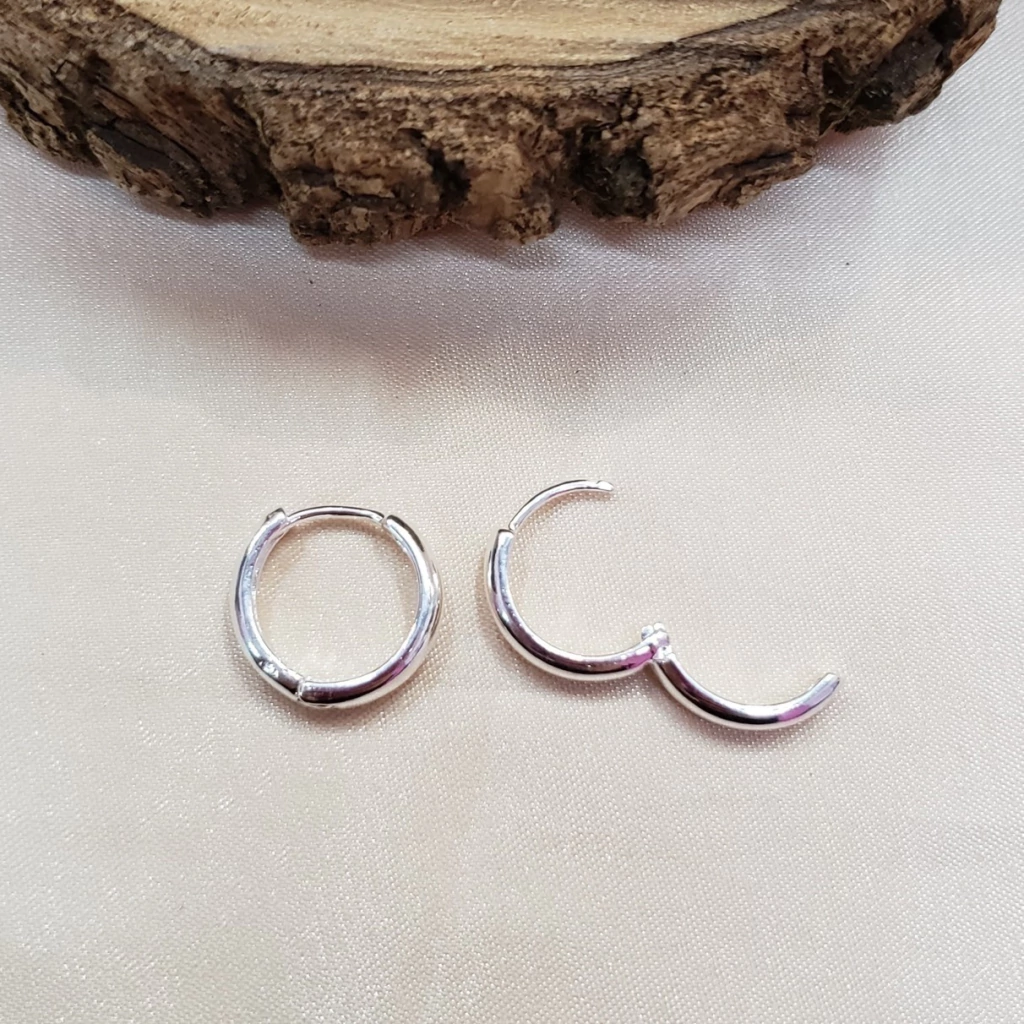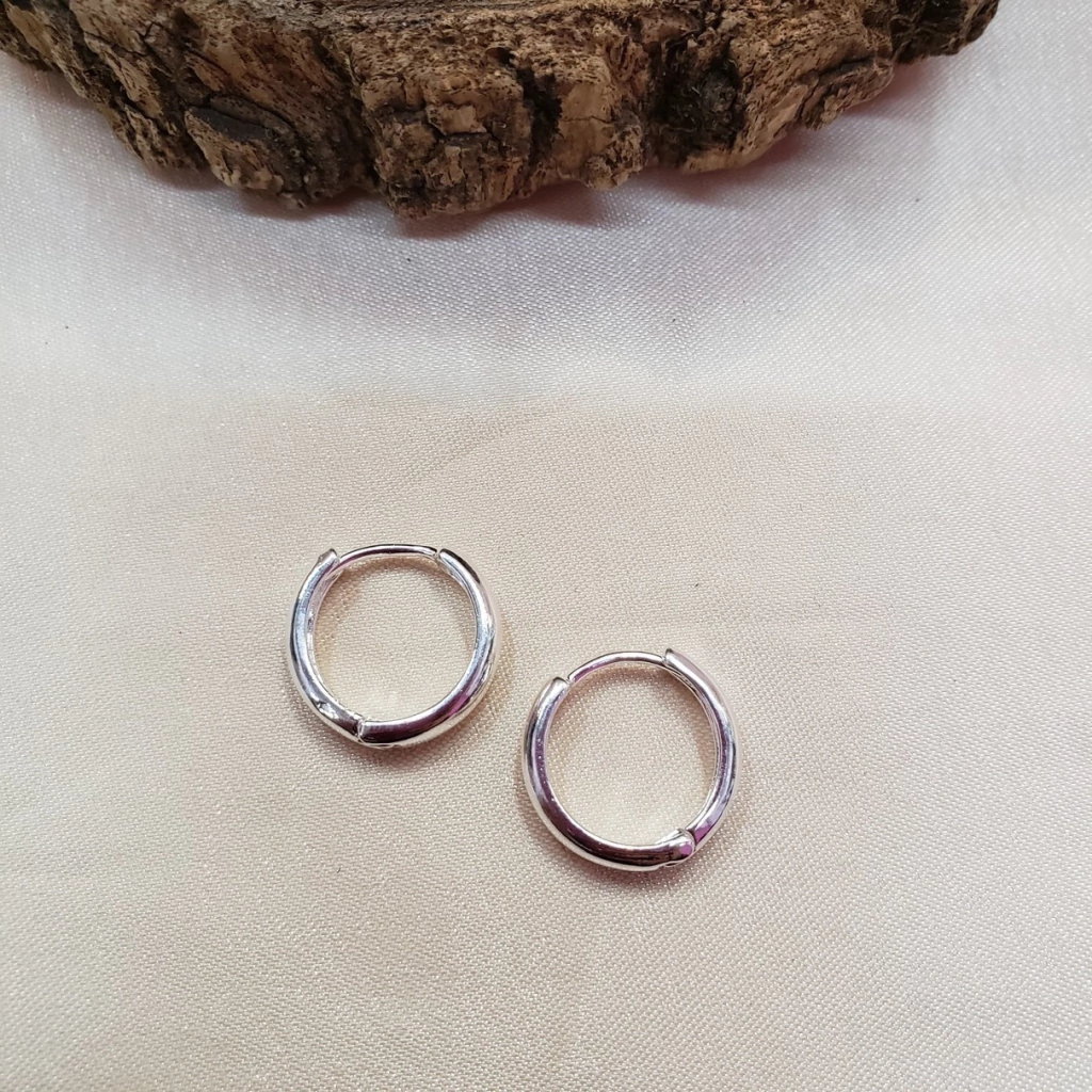 Brinco Pequeno de Argola Lisa Folheado a Prata com Fecho de Clique – Unissex, Fabricação Própria