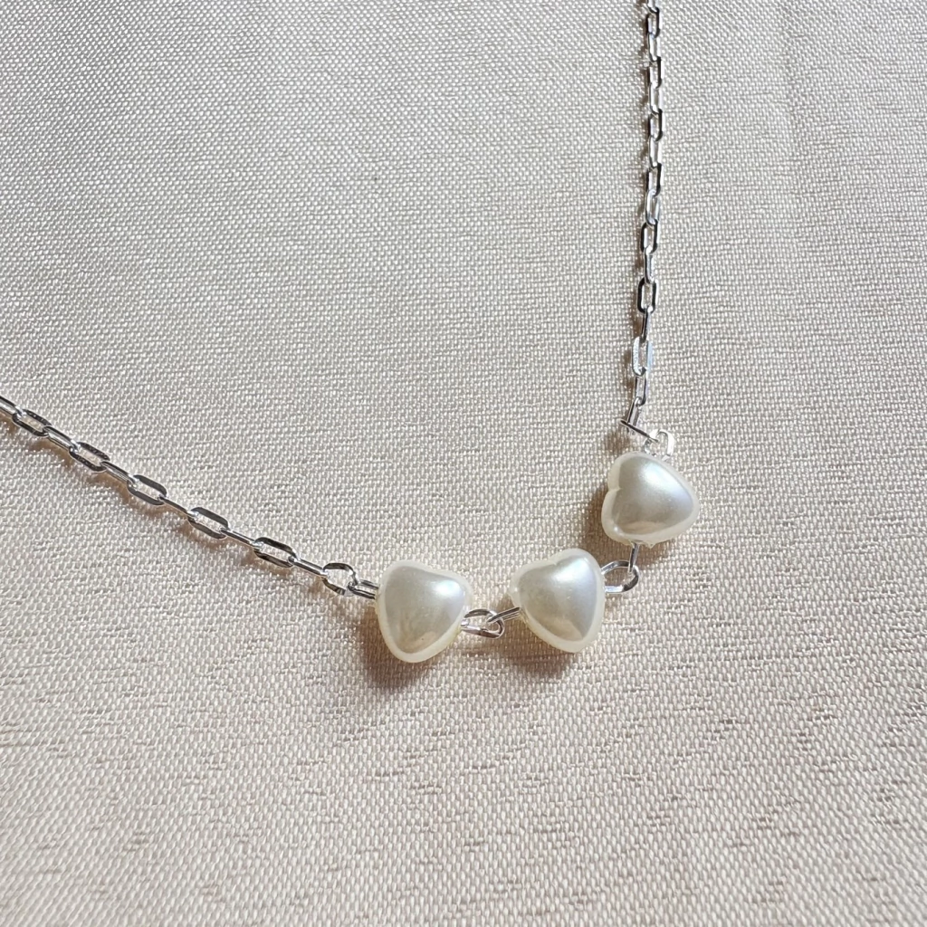 Colar com Corações de Pérola em Prata 925: um acessório que exala elegância e sofisticação! Este colar, delicadamente elaborado com uma corrente adornada por 3 mini corações de pérola, é perfeito para realçar qualquer look, seja para o dia a dia ou para ocasiões especiais.