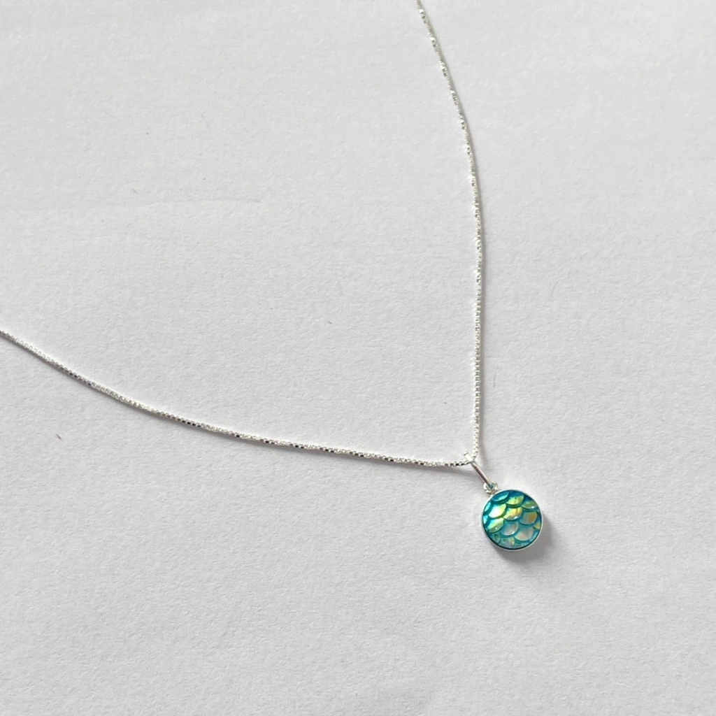 Colar com Pingente de Escama de Sereia em Prata 925.