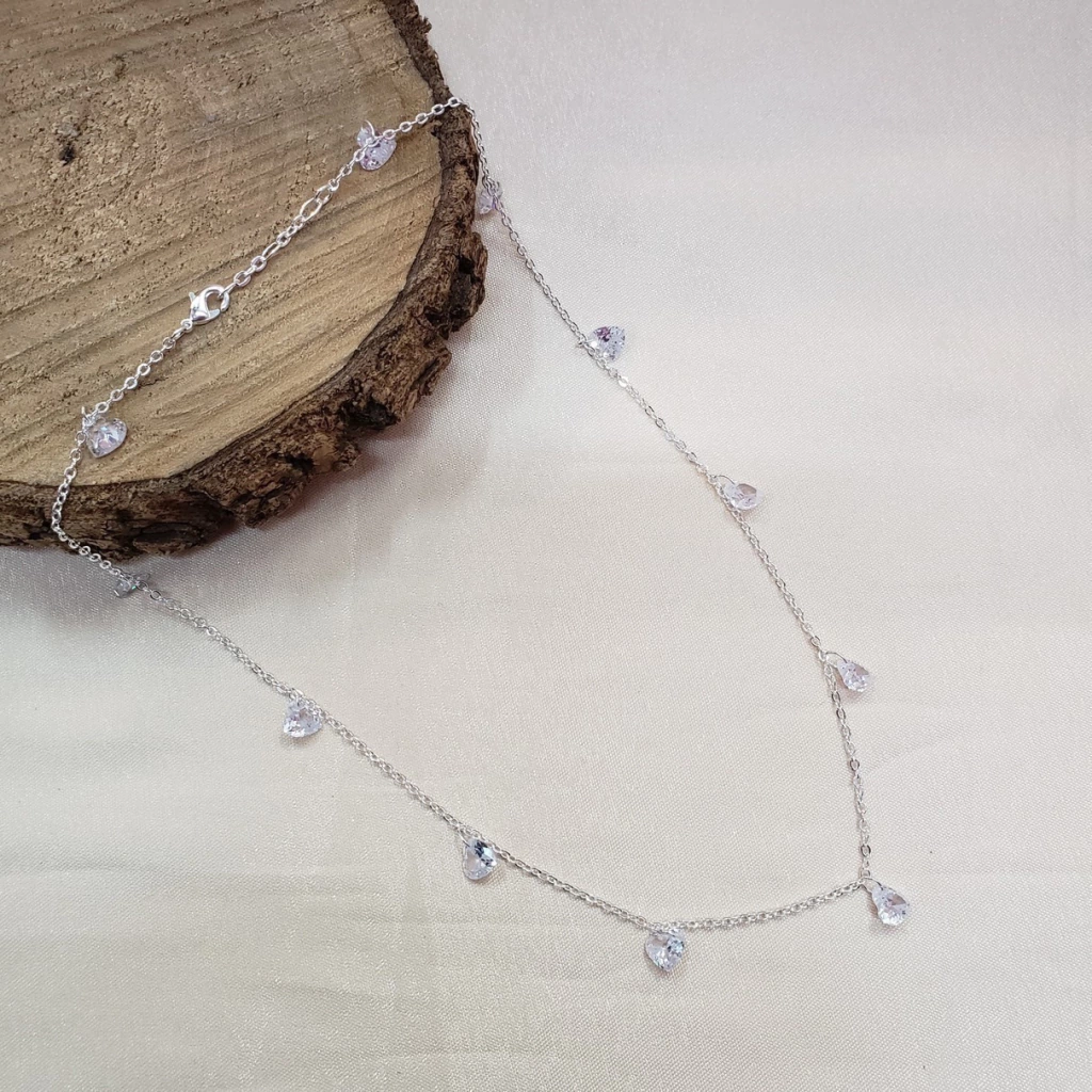 O colar gargantilha com pingentes de coração brilhante folheado a prata é uma peça charmosa e delicada, ideal para quem busca um acessório com toque romântico e sofisticado. Composto por pingentes de pedras de zircônia em formato de coração, distribuídos de forma equilibrada ao longo da corrente, este colar é perfeito para valorizar qualquer produção, do dia a dia a ocasiões especiais.