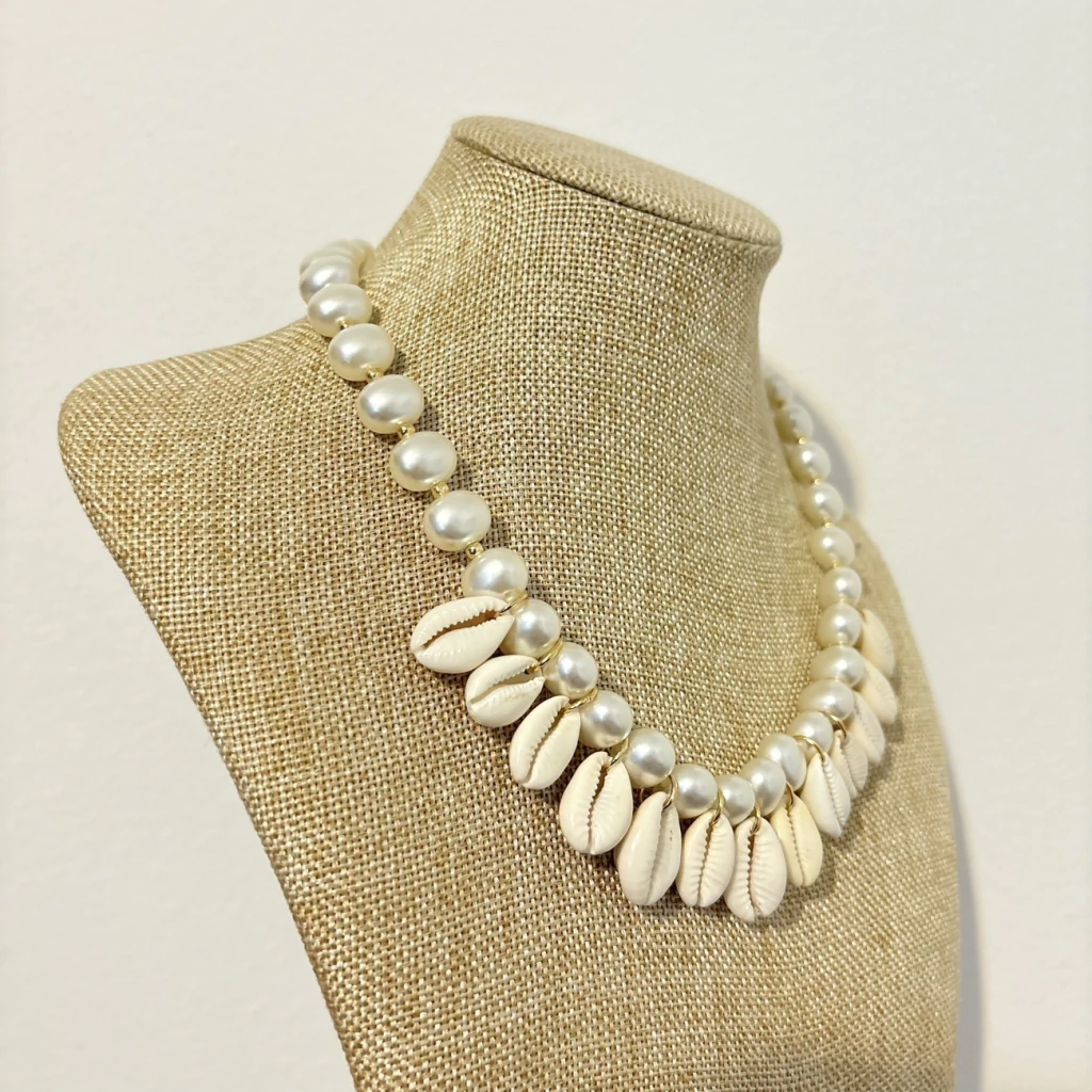 Colar Gargantilha de Pérolas com Búzios Branco: um acessório luxuoso que traz um toque de sofisticação ao seu visual.