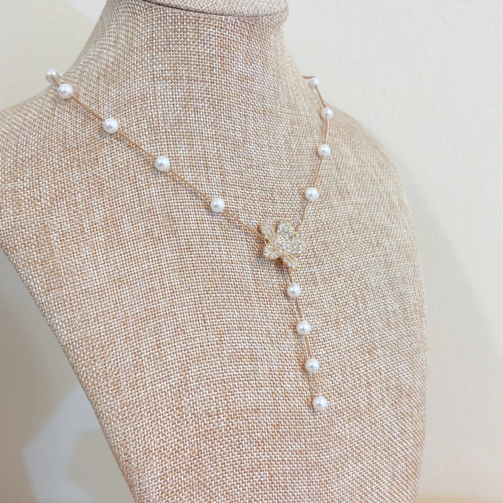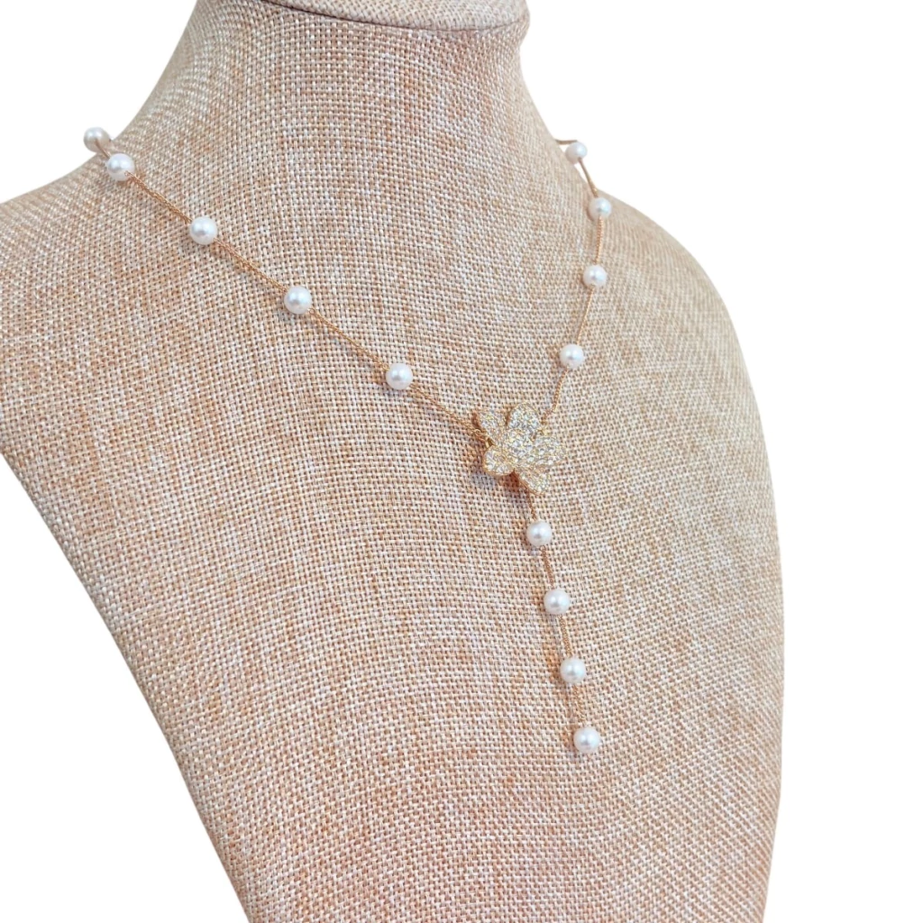 O colar gravatinha com pérolas e pingente de flor com micro zircônias é a união perfeita entre delicadeza, sofisticação e brilho. Seu design alongado em formato gravatinha cria um caimento elegante que valoriza o colo, enquanto as pérolas intercaladas com corrente dourada adicionam charme clássico à peça.