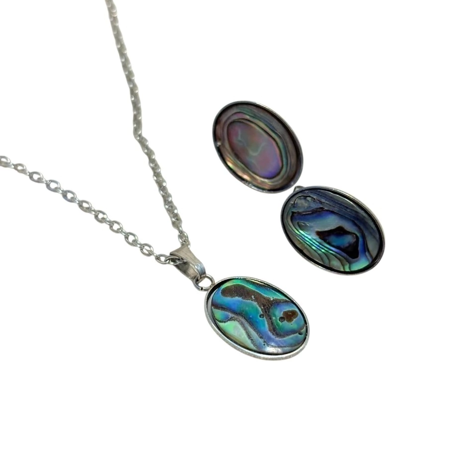 Os brincos em formato oval valorizam o rosto com um toque clássico, enquanto o pingente do colar harmoniza perfeitamente com a composição. A base em aço inox hipoalergênico garante resistência, conforto e durabilidade, sendo ideal para peles sensíveis e para uso diário.