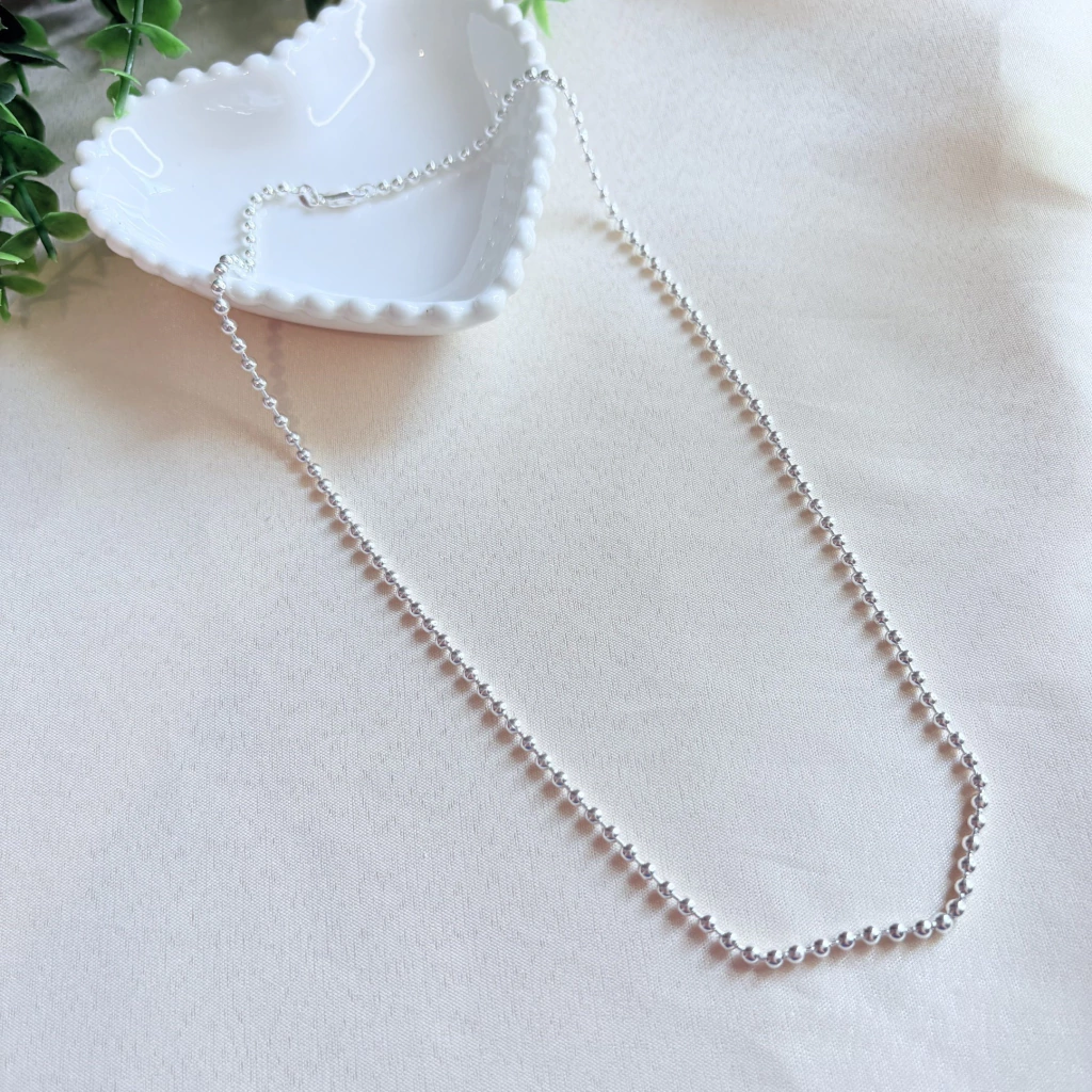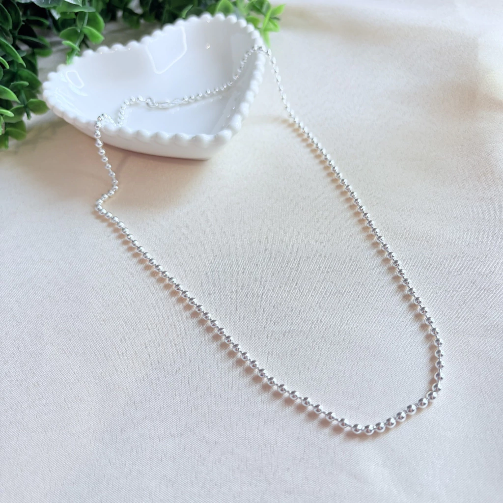 A Corrente de Bolinhas em Prata 925 é o equilíbrio ideal entre delicadeza e presença. Com 50 cm de comprimento e 3 mm de espessura, seu design com bolinhas uniformes confere um charme clássico e moderno ao mesmo tempo. Essa joia é perfeita para ser usada sozinha como peça de destaque ou combinada com pingentes para composições personalizadas.