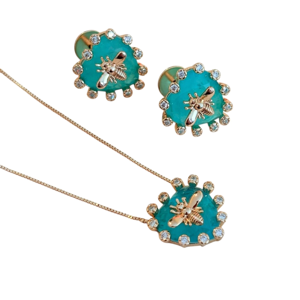 Dimensões: colar 45 cm + 5 cm ajuste | pingente 2 cm | brincos 2 x 2 cm