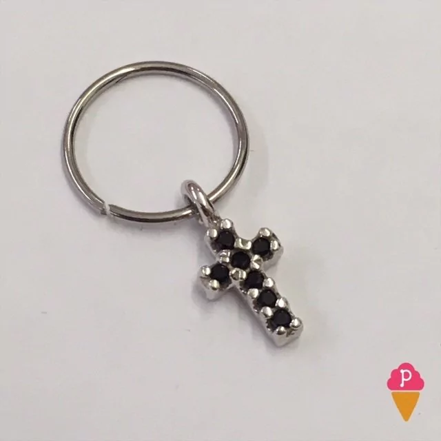 Piercing de Argola com Cruz Pendurada coberta de zirconias.