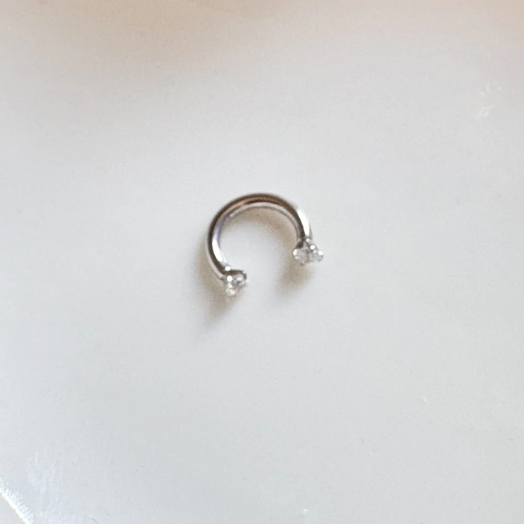 Com formato de ferradura e pontas adornadas com pedras de zircônia cravejados, essa peça entrega um brilho delicado e um toque moderno ao visual. O acabamento polido garante resistência à oxidação, além de ser hipoalergênico, ideal para peles sensíveis.