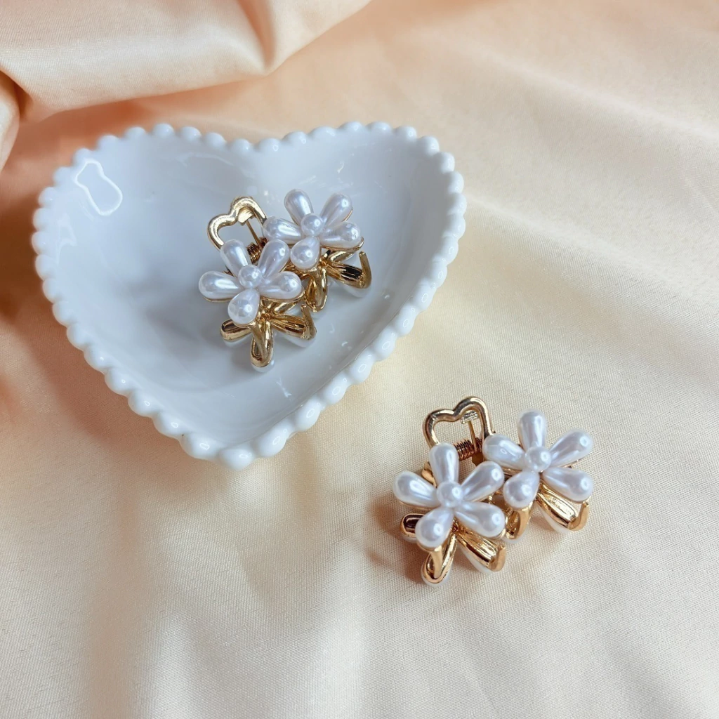 A piranha de cabelo pequena com flores duplas de pérola é perfeita para quem busca um acessório delicado e elegante para complementar penteados. Com um design sofisticado, é ideal para prender pequenas mechas de cabelo e dar um toque refinado em ocasiões especiais, como casamentos, festas ou eventos formais.