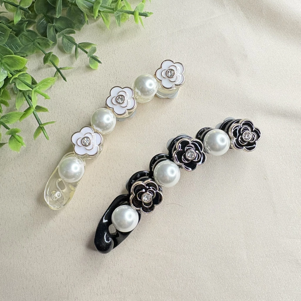 Adicione um toque de sofisticação ao seu visual com a Presilha Banana de Cabelo com Flores e Pérolas. Este acessório encantador combina um design intercalado de delicadas flores com elegantes pérolas, criando uma peça única que realça qualquer penteado.