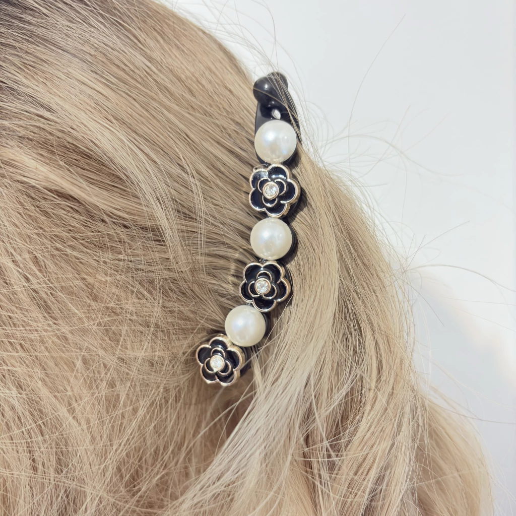 Presilha Banana de Cabelo com Flores e Pérolas