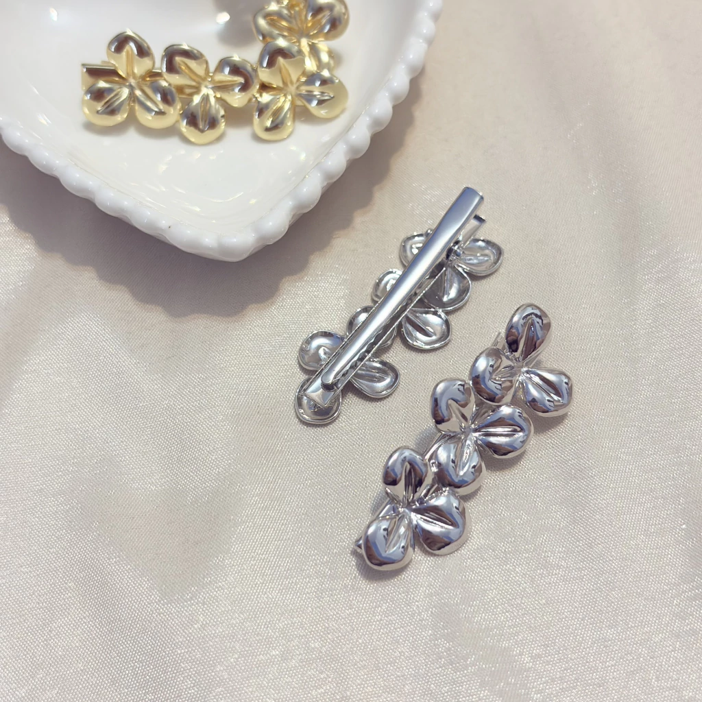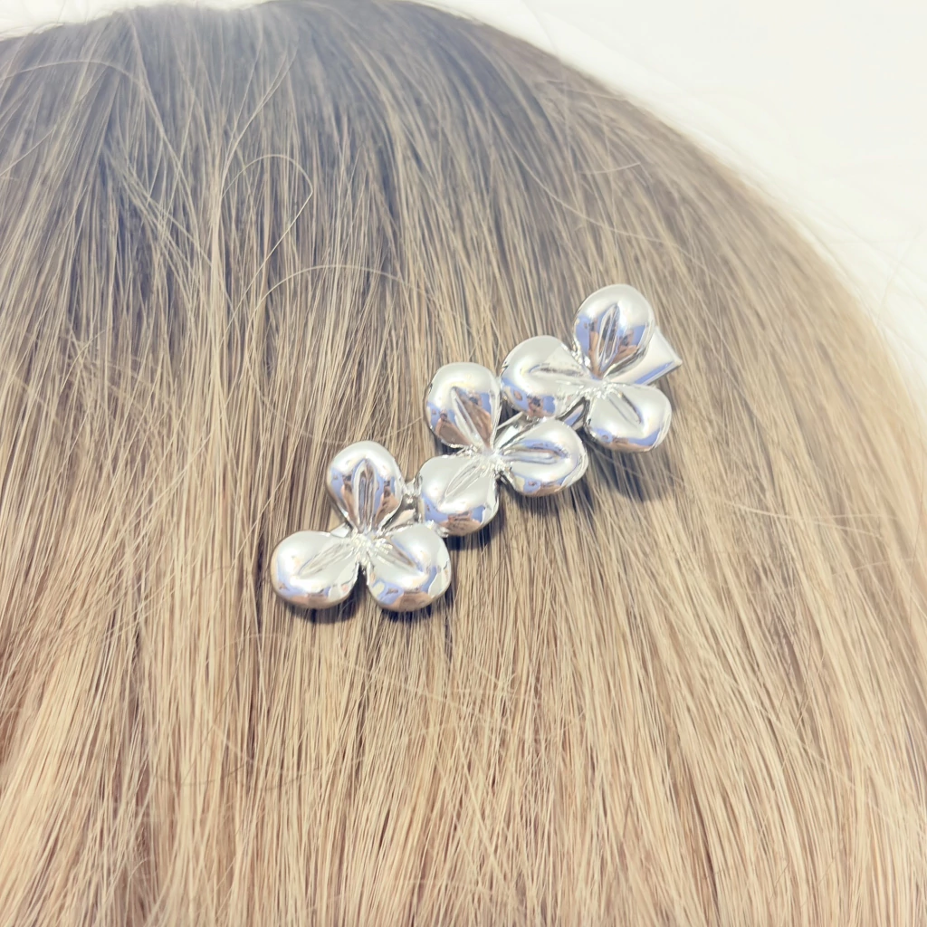 O kit com 2 presilhas bico de pato em metal com flores pequenas é um acessório delicado e versátil para o dia a dia. Com acabamento disponível em prata ou dourado, traz o charme de flores pequenas aplicadas, que deixam o penteado mais feminino e elegante.