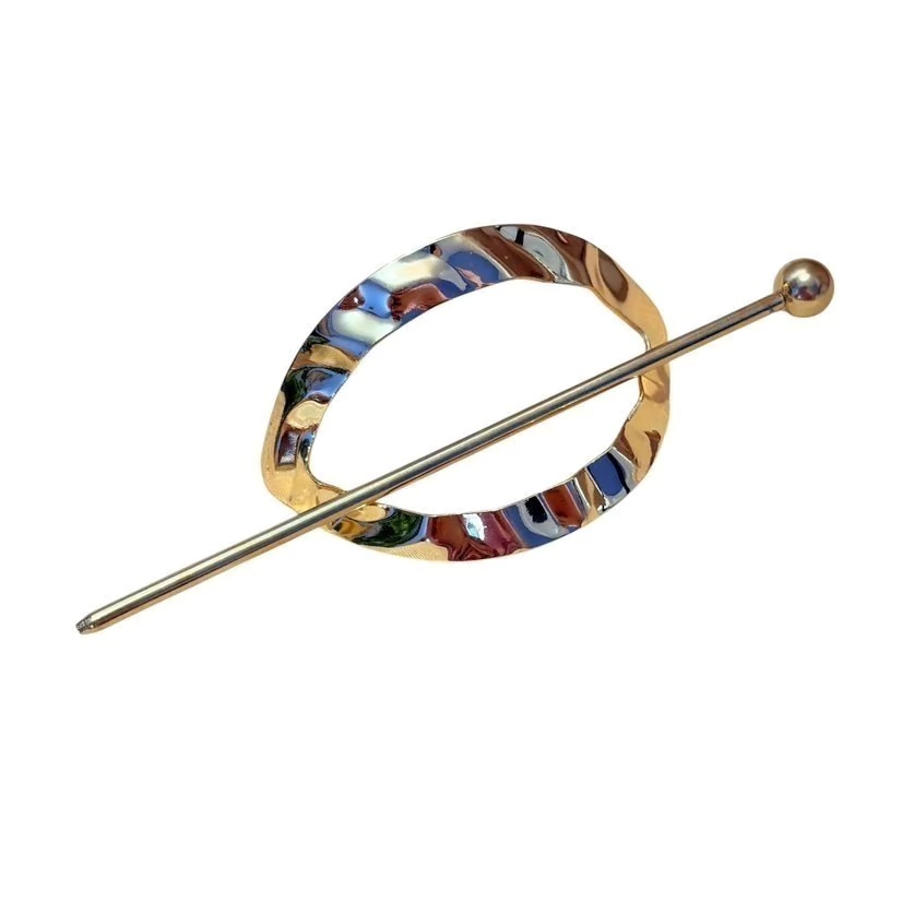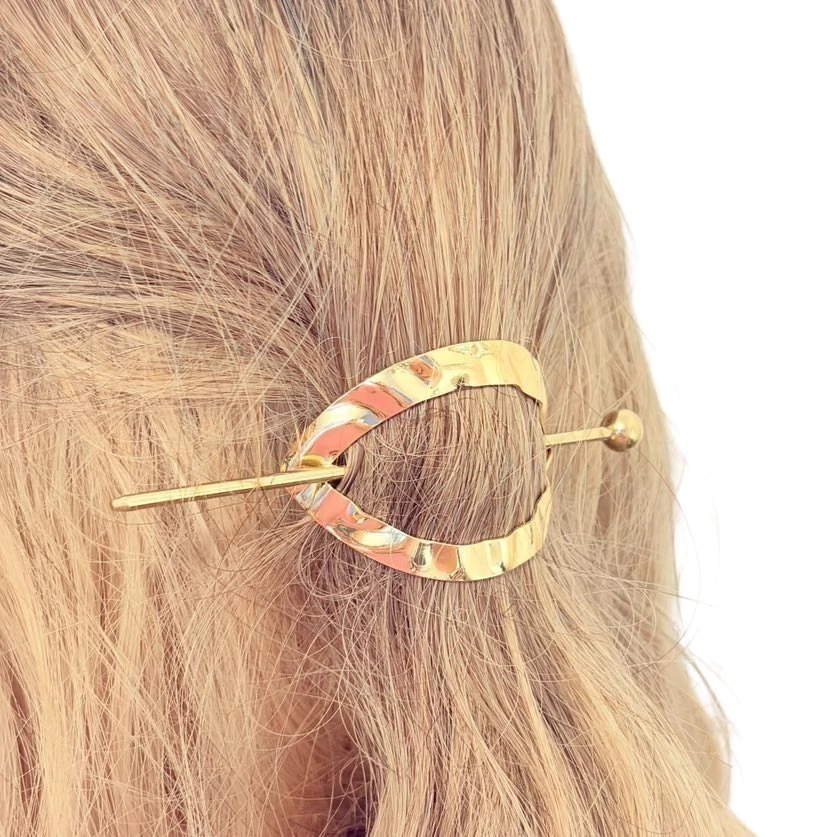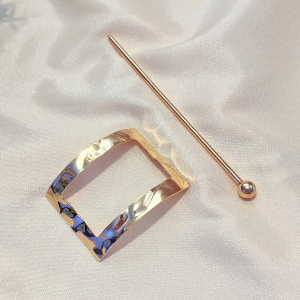 A presilha de palito é um acessório prático e elegante para prender o cabelo de forma rápida e estilosa. Com enfeite em metal dourado disponível nos formatos quadrado ou oval, ela traz um toque moderno e sofisticado ao penteado.