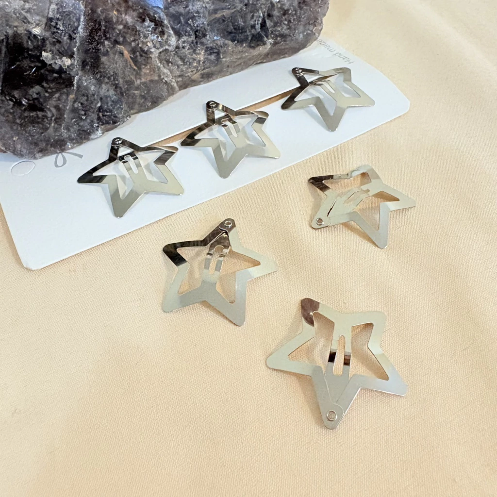 Produzidas em metal prateado, as presilhas oferecem boa fixação e durabilidade, sendo ideais para prender pequenas mechas, finalizar penteados rápidos ou adicionar detalhes charmosos a cabelos soltos ou semi-presos. O design de estrela traz um toque lúdico que transforma o penteado de forma simples e criativa.