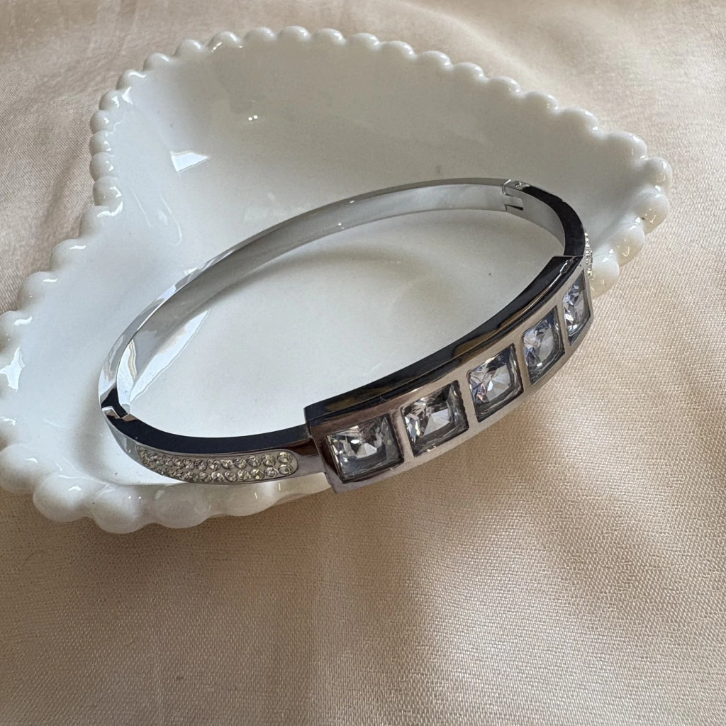 Pulseira Bracelete com Pedras Brancas em Aço Inox