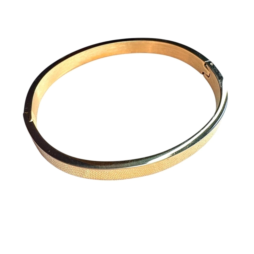 Não perca a chance de brilhar com esta peça única. Compre agora a sua Pulseira Bracelete Dourado Liso em Aço Inox com Fecho de Encaixe e eleve seu estilo!