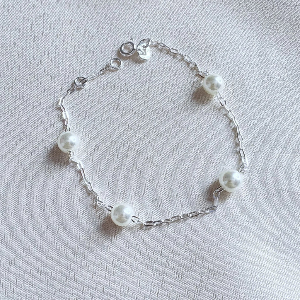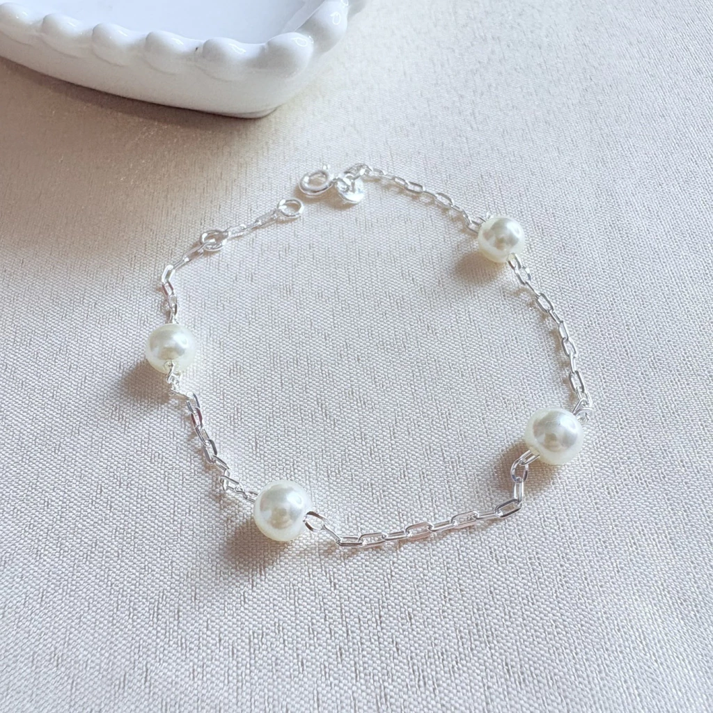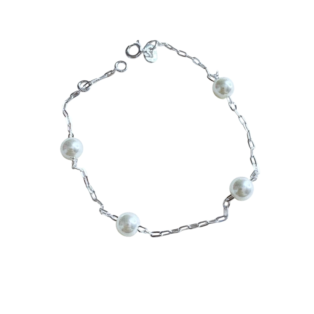 A pulseira com pérolas médias em Prata 925 é uma joia que combina sofisticação com suavidade. Seu design elegante traz pérolas médias intercaladas por elos de prata, resultando em uma peça versátil que vai bem do look casual ao mais refinado.