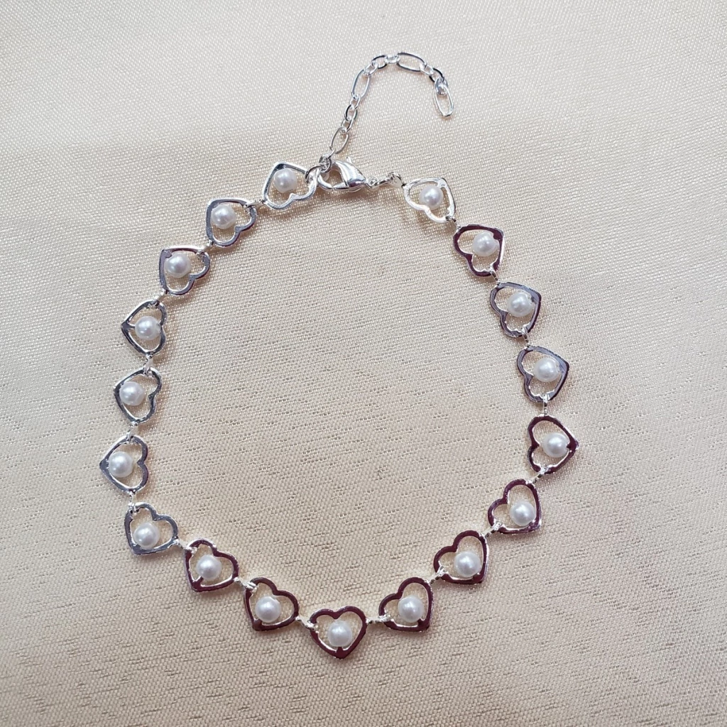 A pulseira de pérola com corações folheada a prata é uma joia encantadora, perfeita para mulheres que amam acessórios delicados e românticos. Seu design combina mini pérolas cuidadosamente intercaladas com corações folheados a prata, resultando em uma peça atemporal e elegante, ideal para compor looks do dia a dia ou ocasiões especiais.
